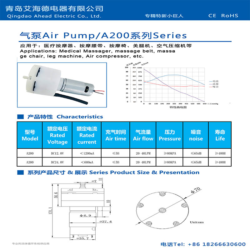 A200医疗器械用按摩器美腿机微型气泵